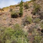 Here on the overgrown slope you also made the last ascent. You are now over 1,300 meters high. The slope path itself brings you up and down in some places, but basically maintaining height on the other side. At the end of the slope the path leads you into a small valley with almond trees. There the path is quite confusing due to various burials. You are in front of a slope that you have to climb to get to the ridge. Possibly the right path is now clear again. During my last visit there it went a little through the bushes and over rocks to get to the ridge.