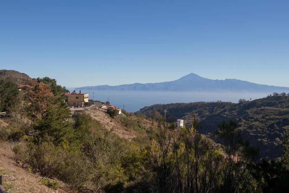A la derecha, el GR-132 continúa hacia Agulo. Manténgase a la izquierda hacia Las Rosas por el Camino El Pedregal. Siempre discurre por la ladera, en parte a través del bosque y luego por laderas de arena y piedra con fantásticas vistas. Pasas por otra casa abandonada y caminas por un barranco. A continuación, el sendero asciende de forma pronunciada hasta una colina despejada con un pilón y una vista. Siga recto. Al cabo de un rato el camino se divide. Aquí se sigue el camino hacia la derecha. Se desciende por otra meseta hasta llegar a una carretera.
