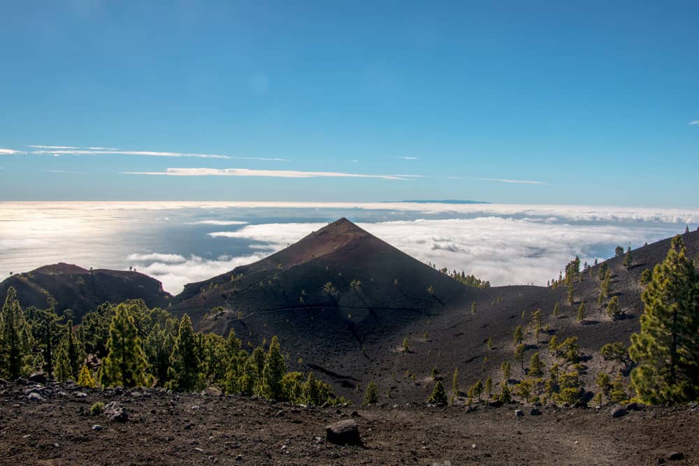 El clima suave de La Palma durante todo el año apenas difiere del de las islas vecinas de Tenerife, La Gomera y El Hierro. Está determinada por las nubes de los vientos alisios y la corriente de Canarias. Las nubes de los vientos alisios llueven en el noreste, mientras que el suroeste de la isla es bastante seco. Pero incluso cuando las nubes de los vientos alisios no llueven, permanecen en la isla como el llamado agua de las nubes. Debido a la gran población de pinos canarios, las nubes se "pegan" a los árboles en forma de condensación de niebla. Las largas agujas del pino canario hacen que el agua pueda escurrirse hacia el suelo. Luego se almacena en el suelo. Es impresionante observar cuando enormes masas de nubes ruedan sobre la cresta de la Cumbre como un rodillo y luego se disuelven en el oeste.